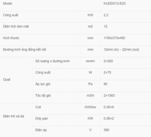 Thông số kỹ thuật dàn lạnh Kaideli KUDD012-E2C: