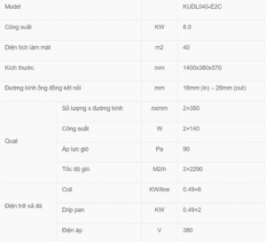 Thông số kỹ thuật dàn lạnh Kaideli KUDL040-E2C: