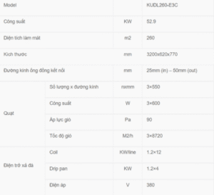 Thông số kỹ thuật dàn lạnh Kaideli KUDL260-E3C: